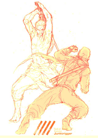 手を描く前に刀の方向を描いてしまったというせいもあるにはあるんだが…。
